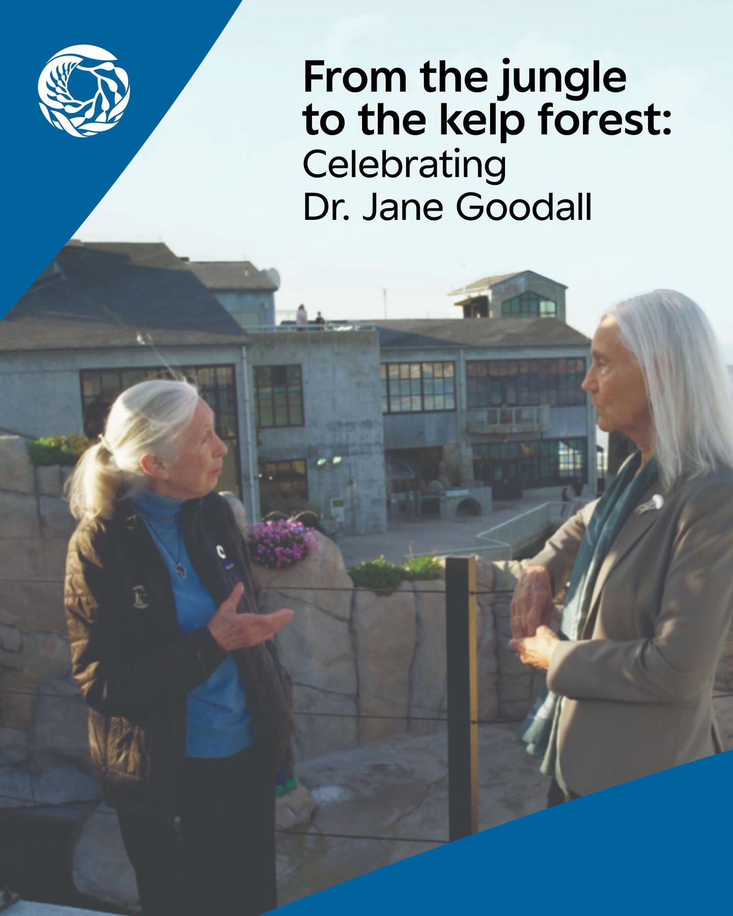 Jane made waves as a trailblazing scientist and conservationist renowned for her work with chimpanzees in Tanzania. The impact of Julie’s leadership in ocean conservation was visible just offshore as they chatted, where a group of wild sea otters rafted on a dense kelp forest canopy in the bay.