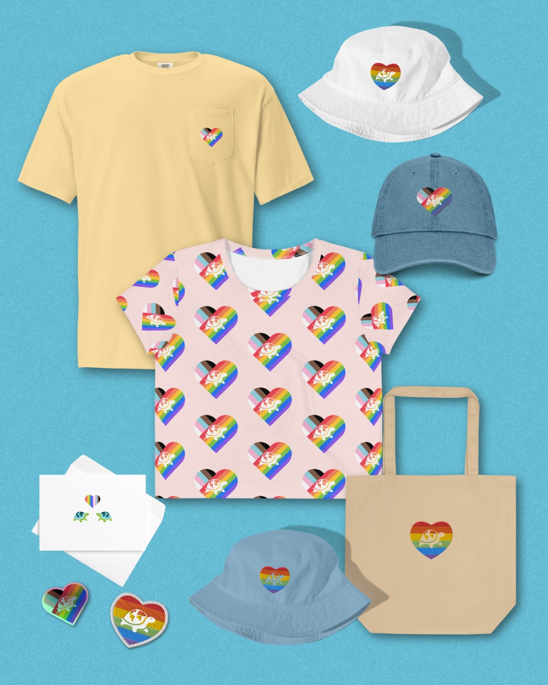 This summer, celebrate Pride with us by shopping our Pride Collection, featuring items with the rainbow Pride Flag and our Turtle Survival Alliance emblem.