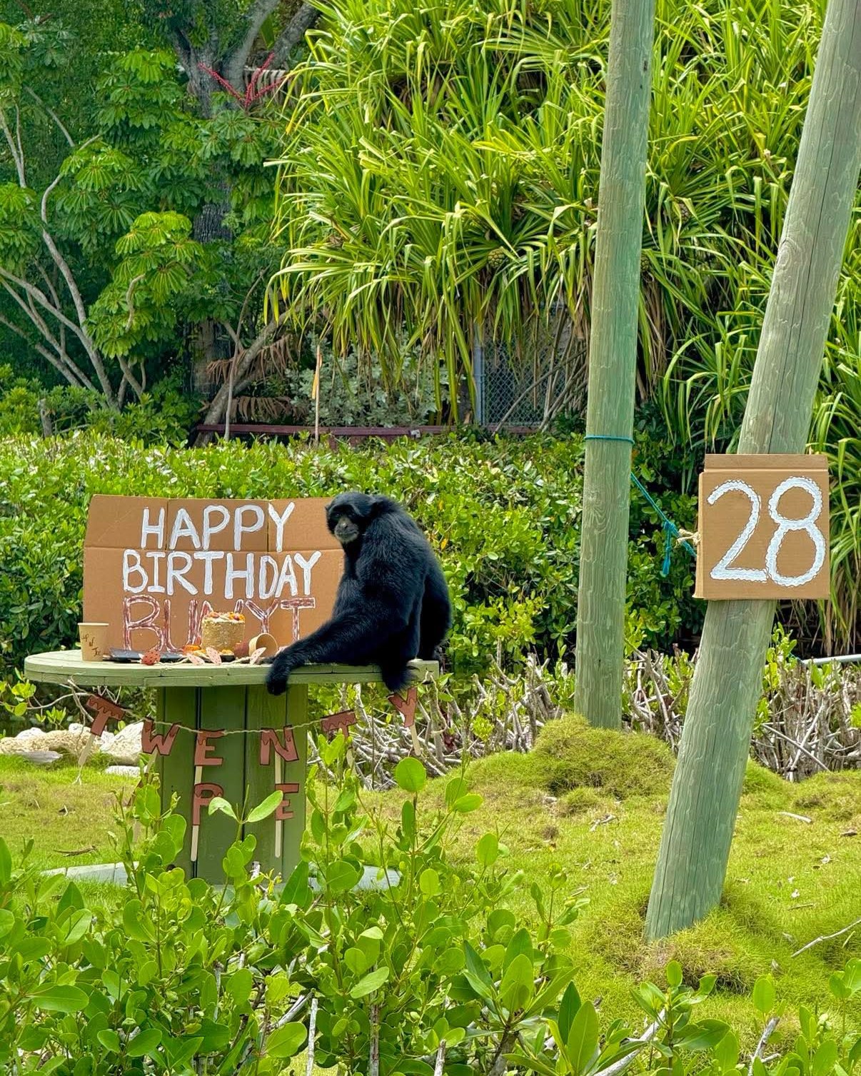 Bunyi, our beloved siamang gibbon, celebrates his 28th birthday today. This milestone is significant, as it offers a moment for reflection not only on Bunyi’s life but also on the broader implications of gibbon care and conservation. Gibbons, particularly siamang gibbons, are known for their agility and vocalizations, making them a prominent species in tropical forests of Southeast Asia. Celebrating Bunyi’s life calls attention to the unique attributes of siamangs and raises awareness about the challenges they face in the wild.