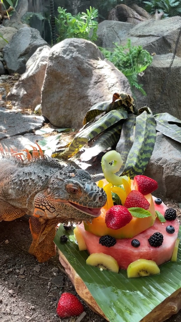 Happy 9th birthday(ish) to green iguana Cactus! We don’t know Cactus’ exact hatch day, but that didn’t stop us from throwing him a party — and inviting some guests!