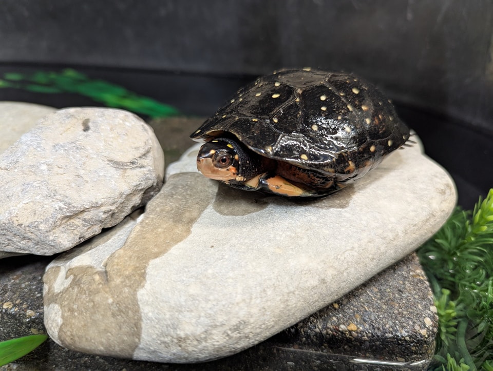 🥳 We have a hatch-day to shellabrate today! Our little spotted turtle girly Petoskey turned 31 years old today! Happy Birthday, Petoskey! 🎂🐢