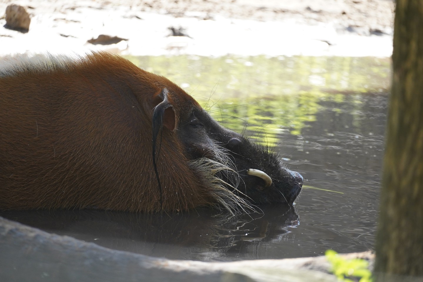 Red river hogs like Maverick are excellent swimmers and can even dive underwater, catching their breath every 15 seconds! They get their name from their reddish-brown fur and their habit of wading through rivers and streams. Next time you visit ZooTampa, keep an eye out for Maverick cooling off with a refreshing dip!
