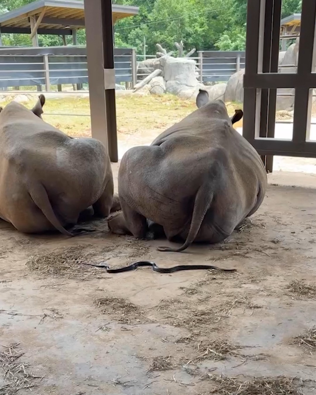 At Zoo Knoxville, we share our space with all kinds of wildlife, including some very curious wild rat snakes! 🐍 While we know they’re part of our zoo family, we’re not always sure they know that. Every now and then, that leads to some unexpected interactions with our animal neighbors! 🦏🐒🦒