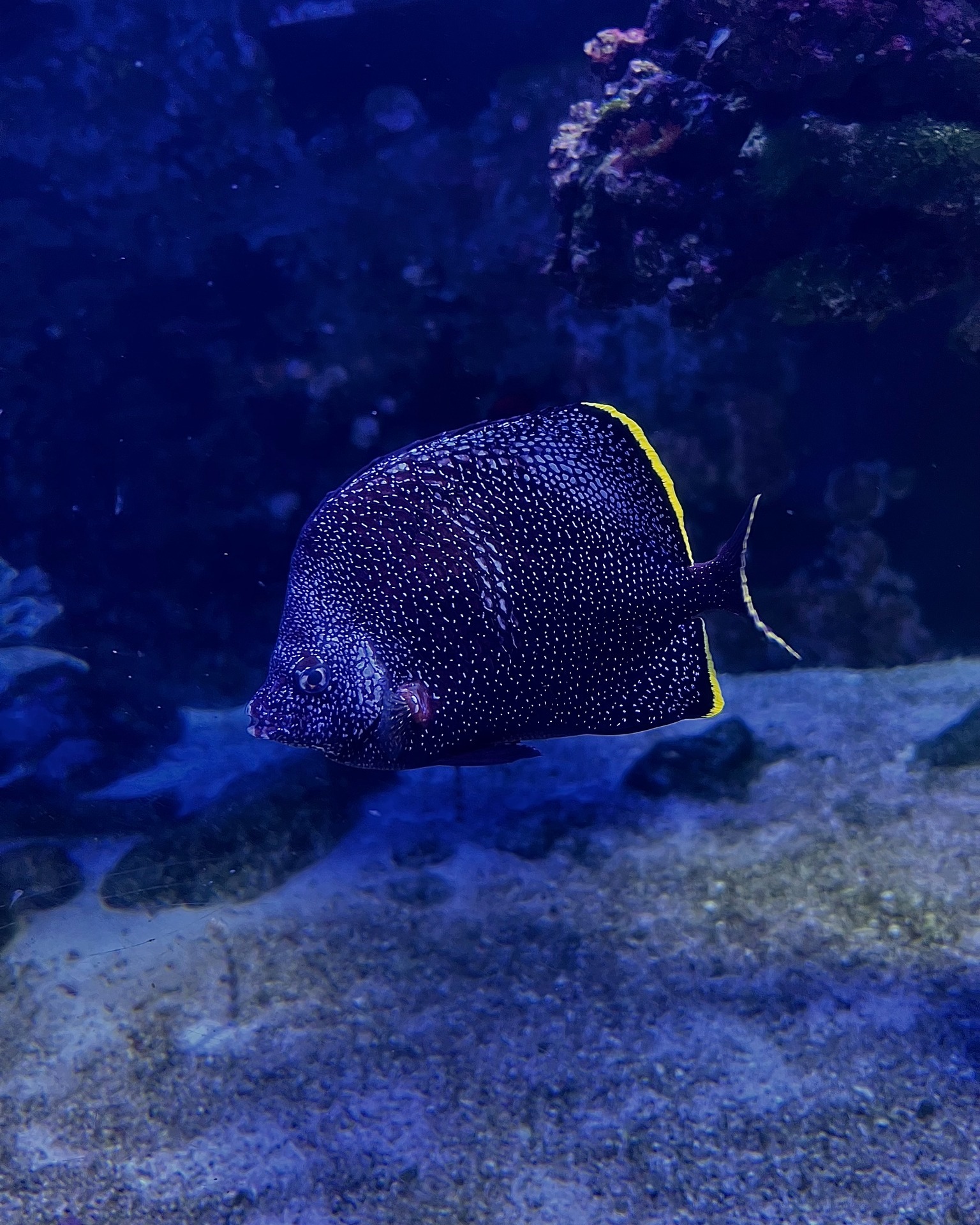 The physical characteristics of the wrought-iron butterflyfish are impressive and distinctive. Adult specimens generally reach lengths of about 7 to 8 inches. Their bodies are relatively flat and oval, a common trait amongst butterflyfish species. The striking color pattern features metallic black scales that provide excellent camouflage among the rocky reef environment. The yellow-tipped fins contrast beautifully with the dark body, adding to the fish’s visual appeal. This color scheme serves not only an aesthetic purpose but also plays a role in communication and mating. The shape of the body contributes to its swimming capabilities, allowing quick maneuvers in tight spaces, which is vital for avoiding predators and navigating the complex reef structures.