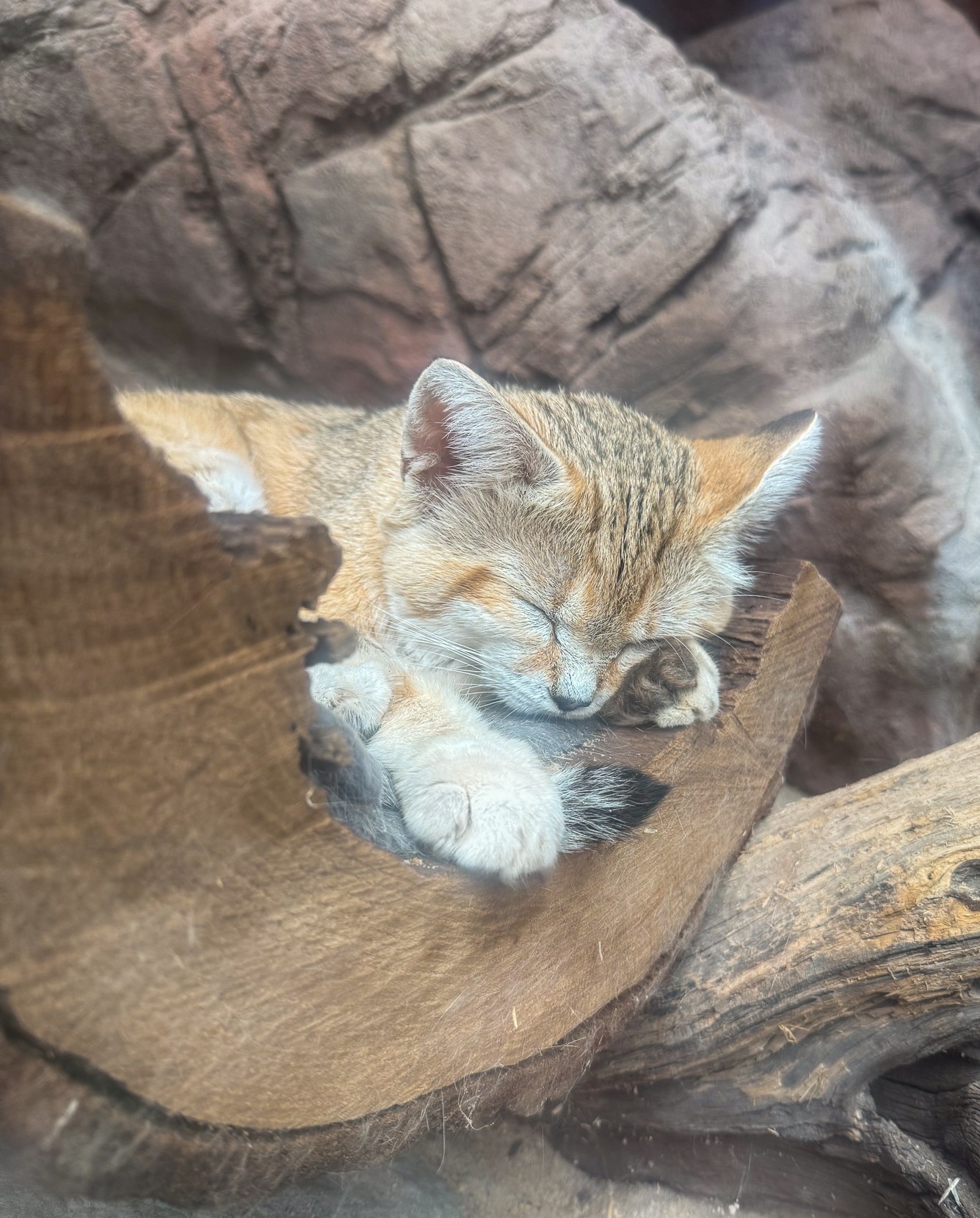 We all want to be Cosmo the sand cat today, curled up and cozy just napping away after a 3-day weekend! 💤 Sand cats are cute but NOT cuddly! They are fierce predators and the only species of cat that live solely in the desert. 🏜️ 🌵