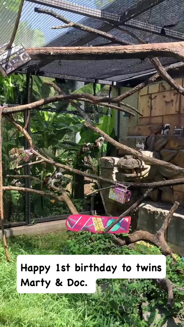 Cotton-top tamarins are one of the most endangered primates in the world, which makes this 1st birthday celebration even happier! (🎥 & party by Keeper Macksi)