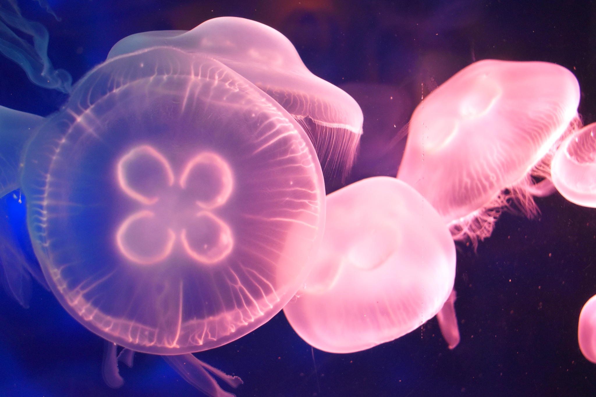 Moon jellies are incredibly interesting animals. Adult jellies swim constantly, which is a necessity for oxygen exchange and feeding. They swim by pushing water in and out of their bell. They also rely heavily on currents in the water!