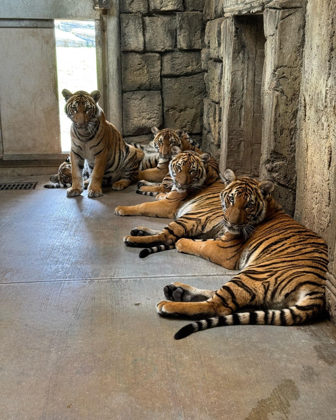 Five tiger cubs, all in a row 🐯🐾 Can you believe they’re already 9 months old and have all reached over 100 pounds? 🥹