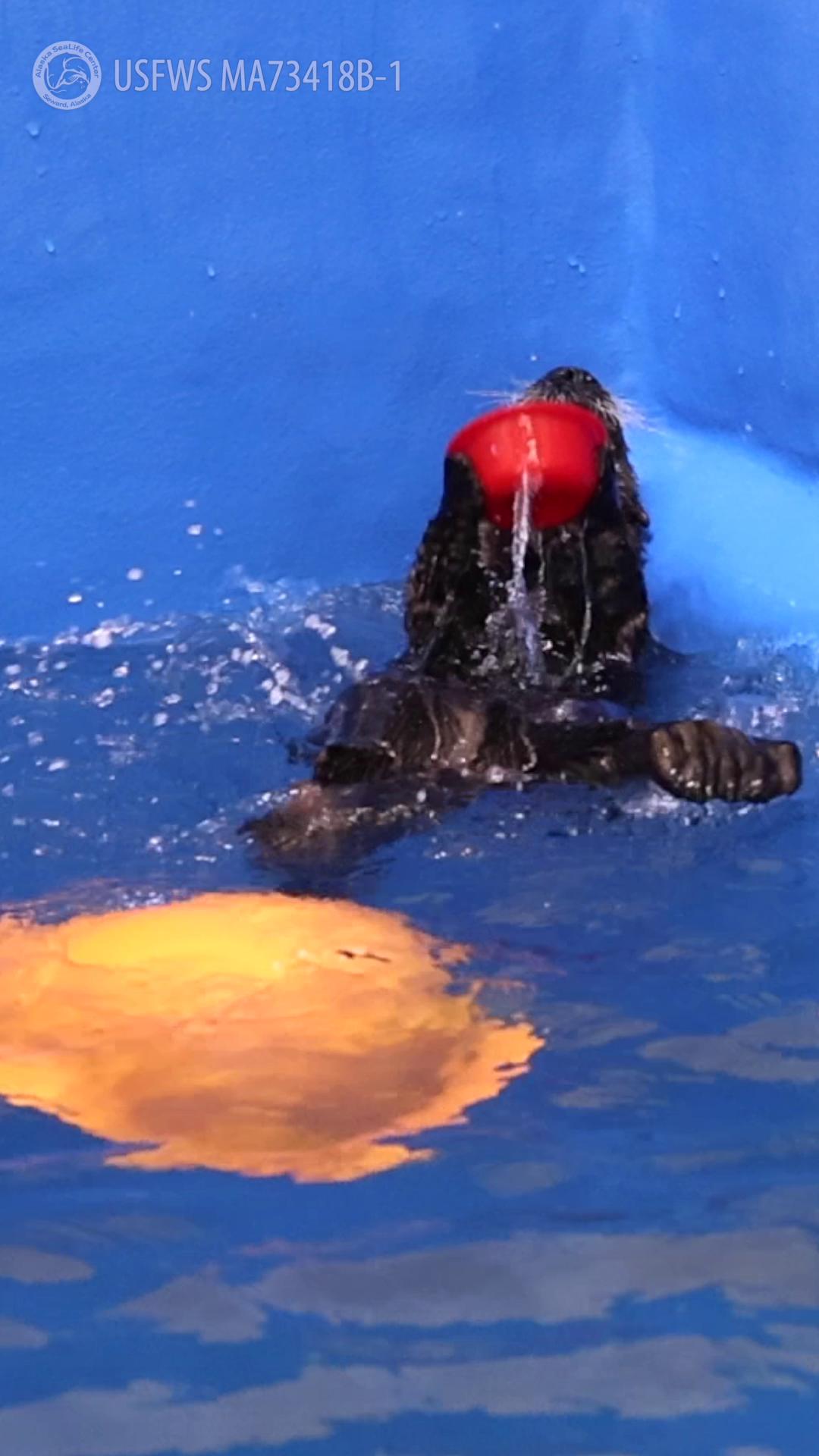 Frozen clam in an otter safe bowl makes great enlightenment for Cali the sea otter pup!