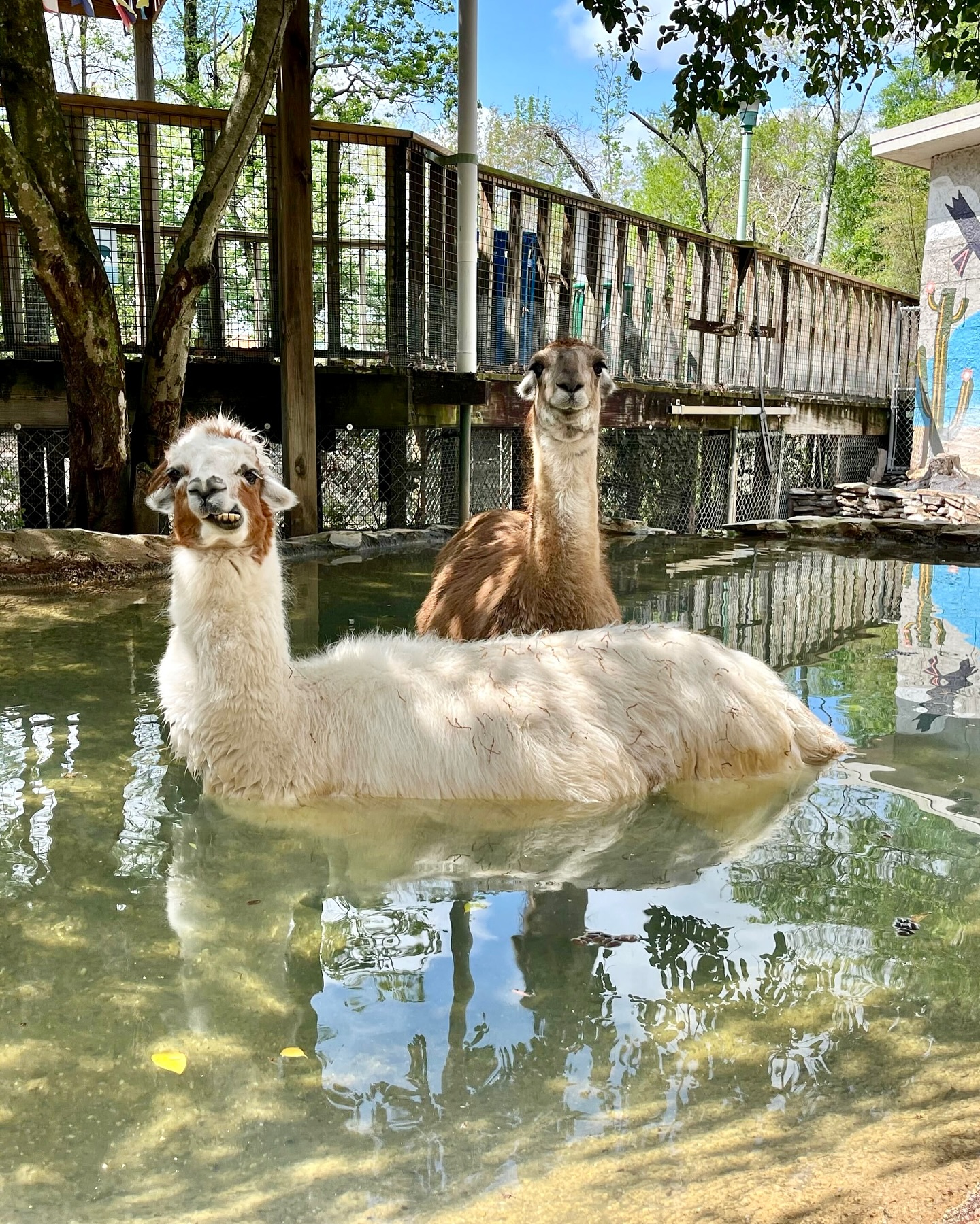 Did you know capybaras are semi-aquatic and love to lounge in the water? Our alpacas may not be aquatic, but they enjoy a dip in the pool, too! 💦