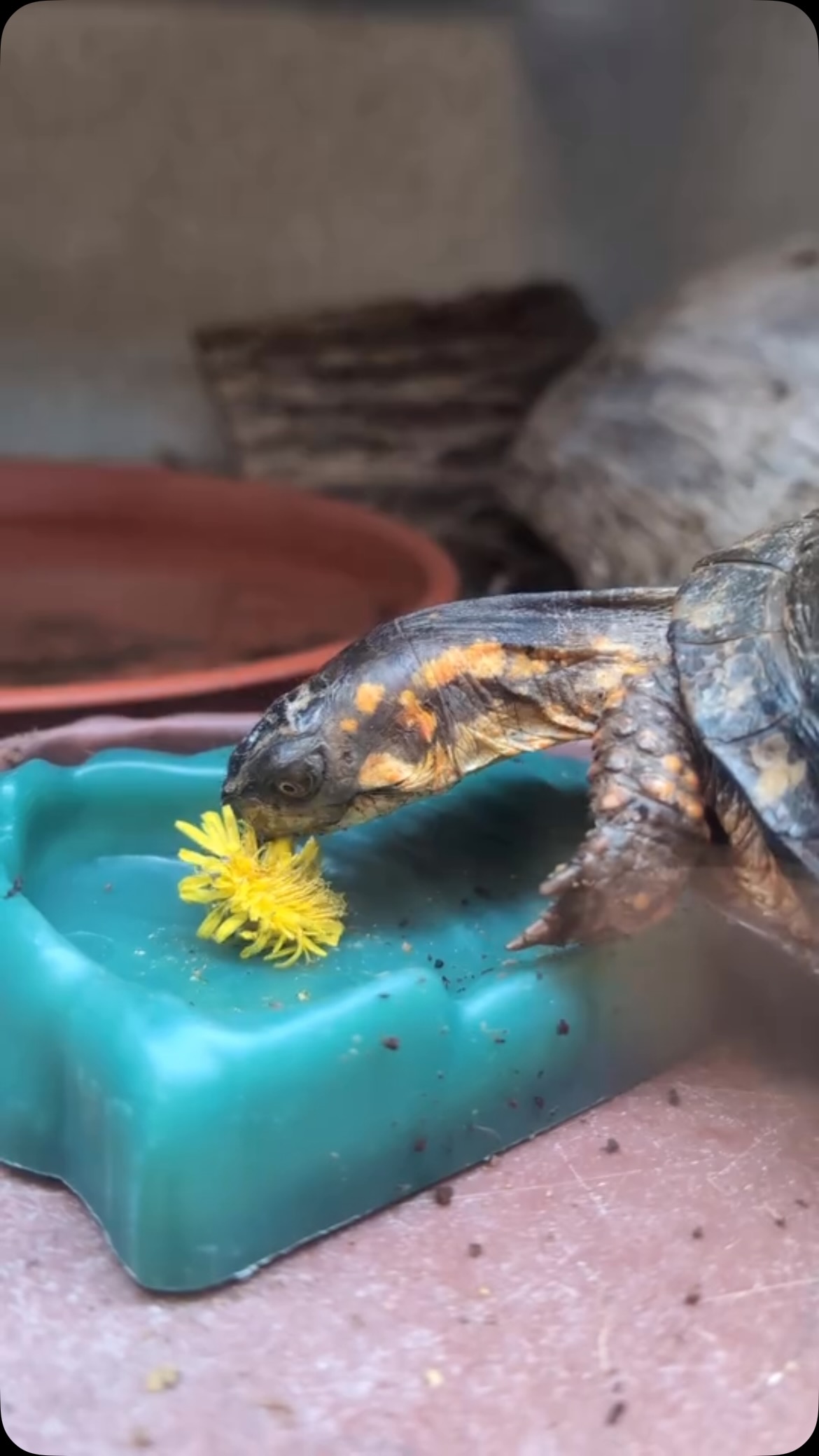 Eastern box turtles (like Treehouse) get their name from their hinged plastron, or the underside of the shell, which allows them to almost completely close their shell when threatened.