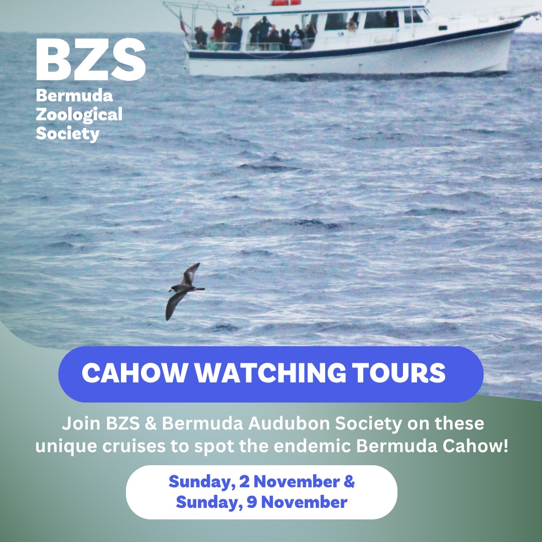 📅 Two Cahow Watching trips are on offer and will take place on Sunday, 2 November and Sunday, 9 November. The boat will depart Flatts Dock across from BAMZ at 2:30 p.m. arriving back approximately at 6:30 p.m. The cost is $85 for non-members and $75 for BZS and Bermuda Audubon Society members.