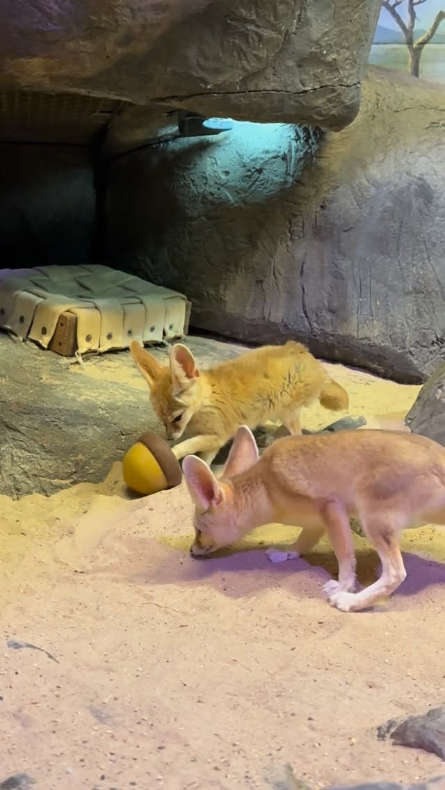 We’ve already received some fun gifts—like these acorn feeders our fennec foxes, Clover and Lucky, have been busy exploring! 🦊✨