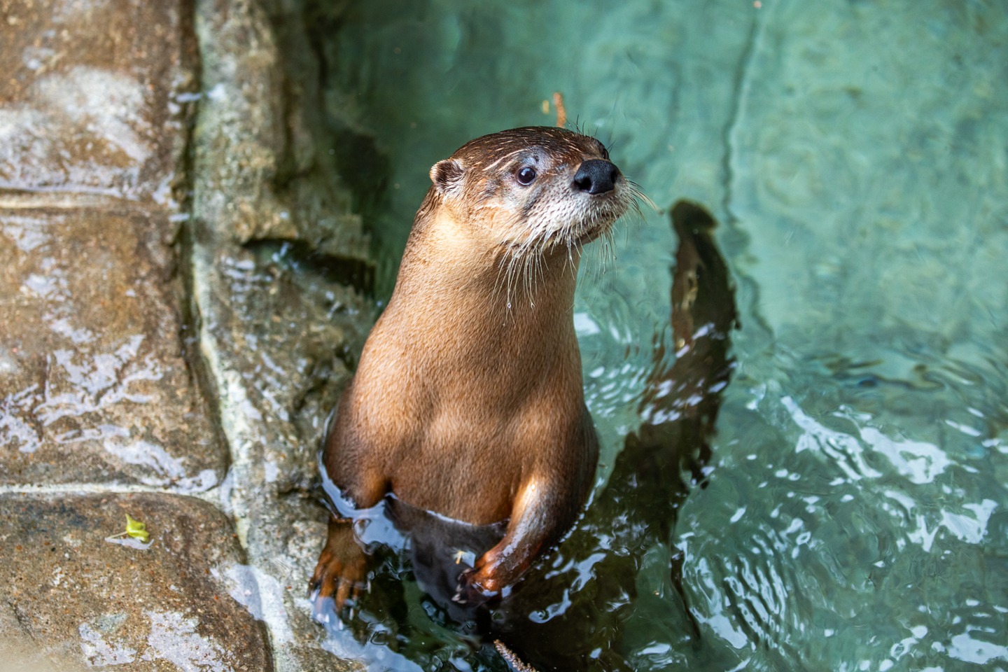 Behaviorally, river otters are social animals, often seen frolicking in groups or pairs. This social behavior mirrors in Flo’s interactions with the environment, providing valuable enrichment. In their natural habitats, otters play a crucial role in maintaining aquatic ecosystems. By preying on fish and other organisms, they help control populations and balance the ecosystem. Observing Flo can offer visitors insights into these dynamics.