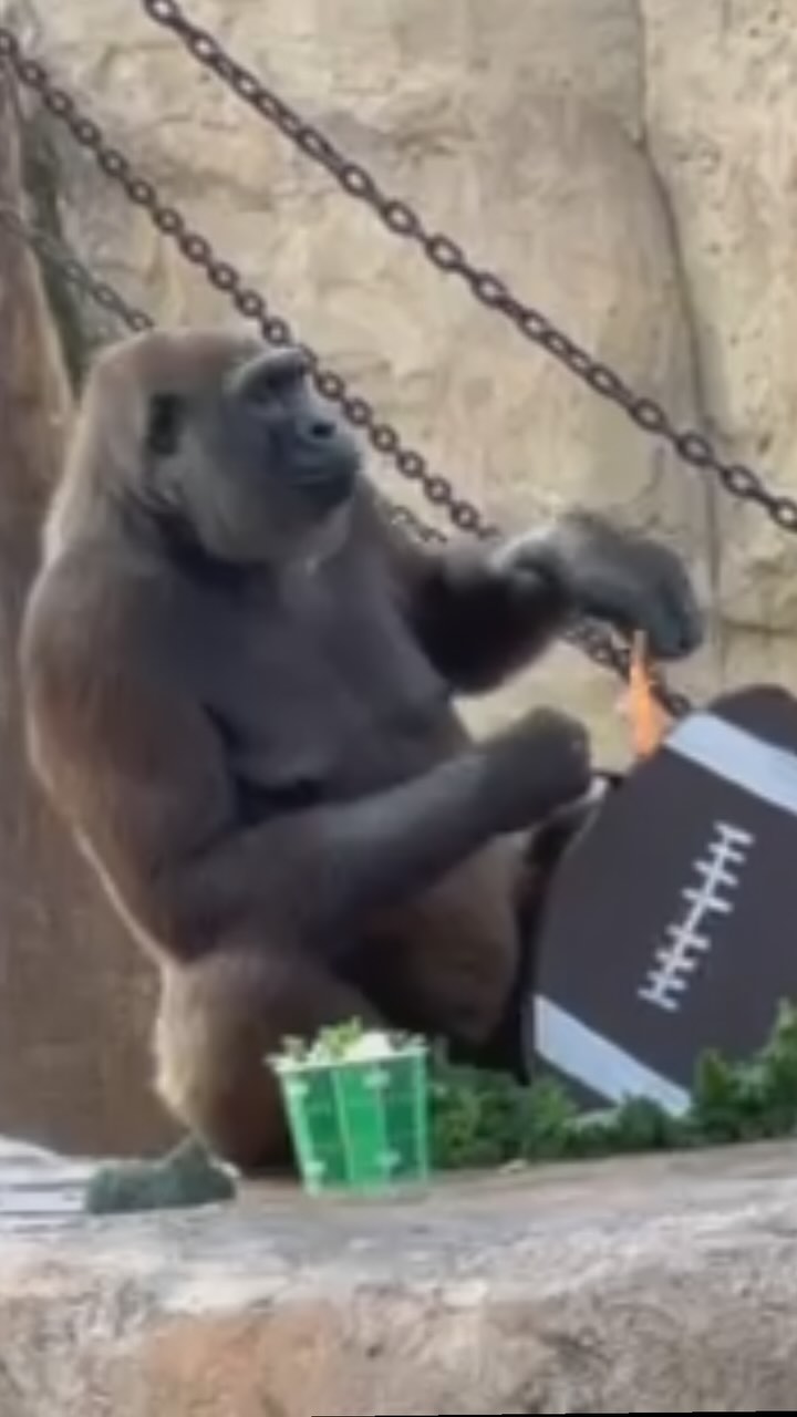 More football fun from yesterday 🏈 Shoutout to all the keepers and our Curator of Animal Welfare for the fun enrichment.