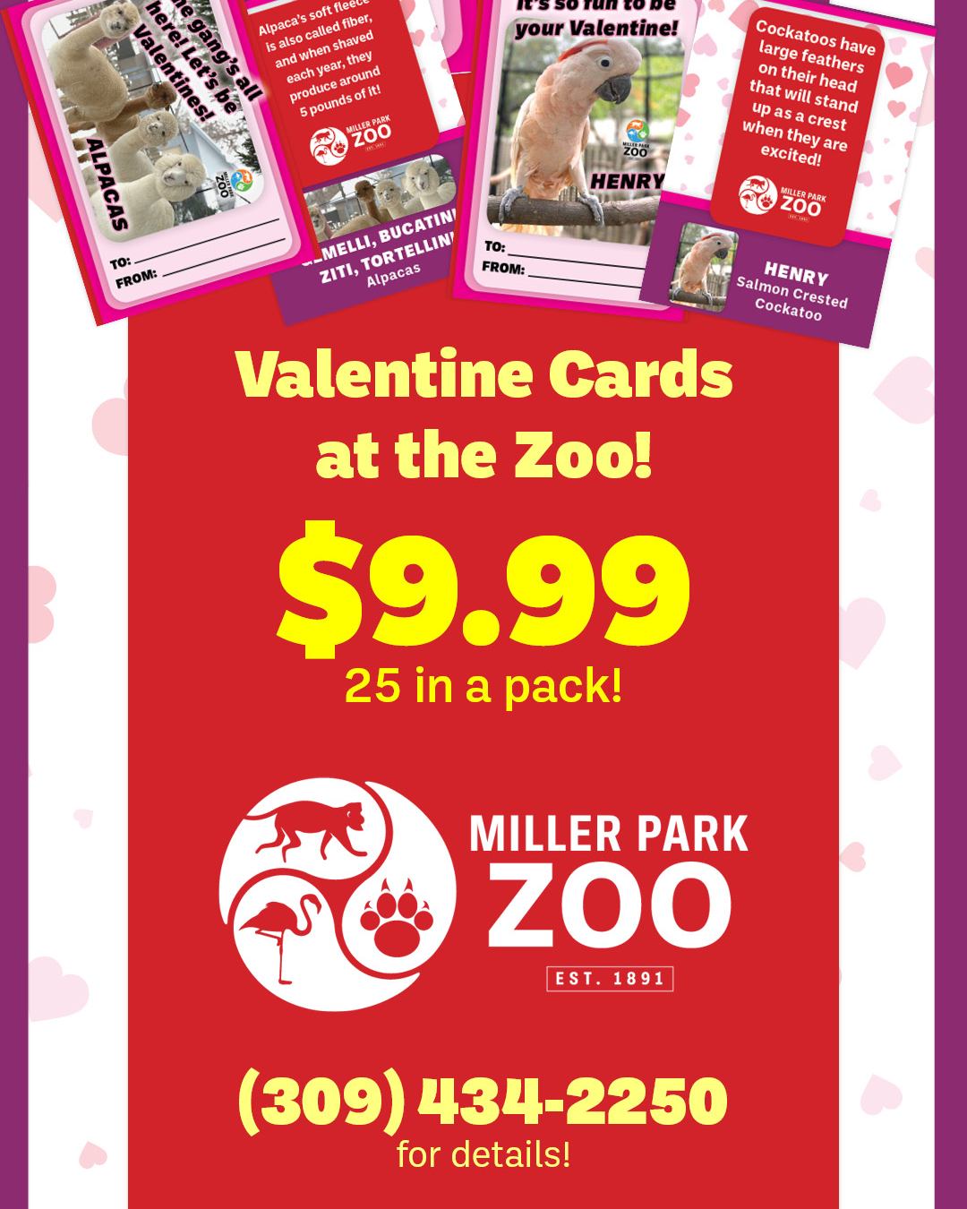 By popular demand, our MPZ Valentine Cards are for sale again. Product is limited this year, so order yours today! You can do this by coming in the the zootique, calling 309-434-2250, or emailing Sandra Goaley at sgoaley@cityblm.org. We will ship for an additional $5.
