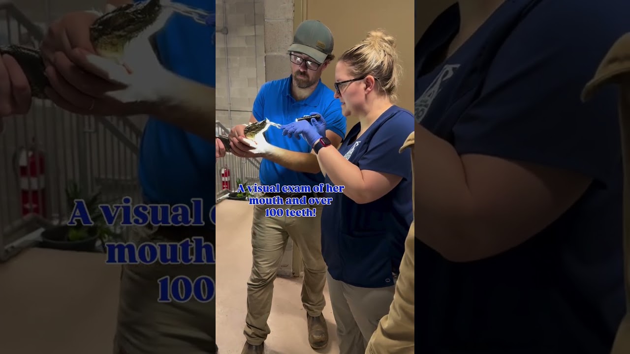 It took 7 keepers and 3 vets to complete this checkup including blood draws, visual exams, and weight and length checks! Fauna is in great health- she weighed in at a whopping 52.5 pounds and is 11ft, 3in long. ๐ณ