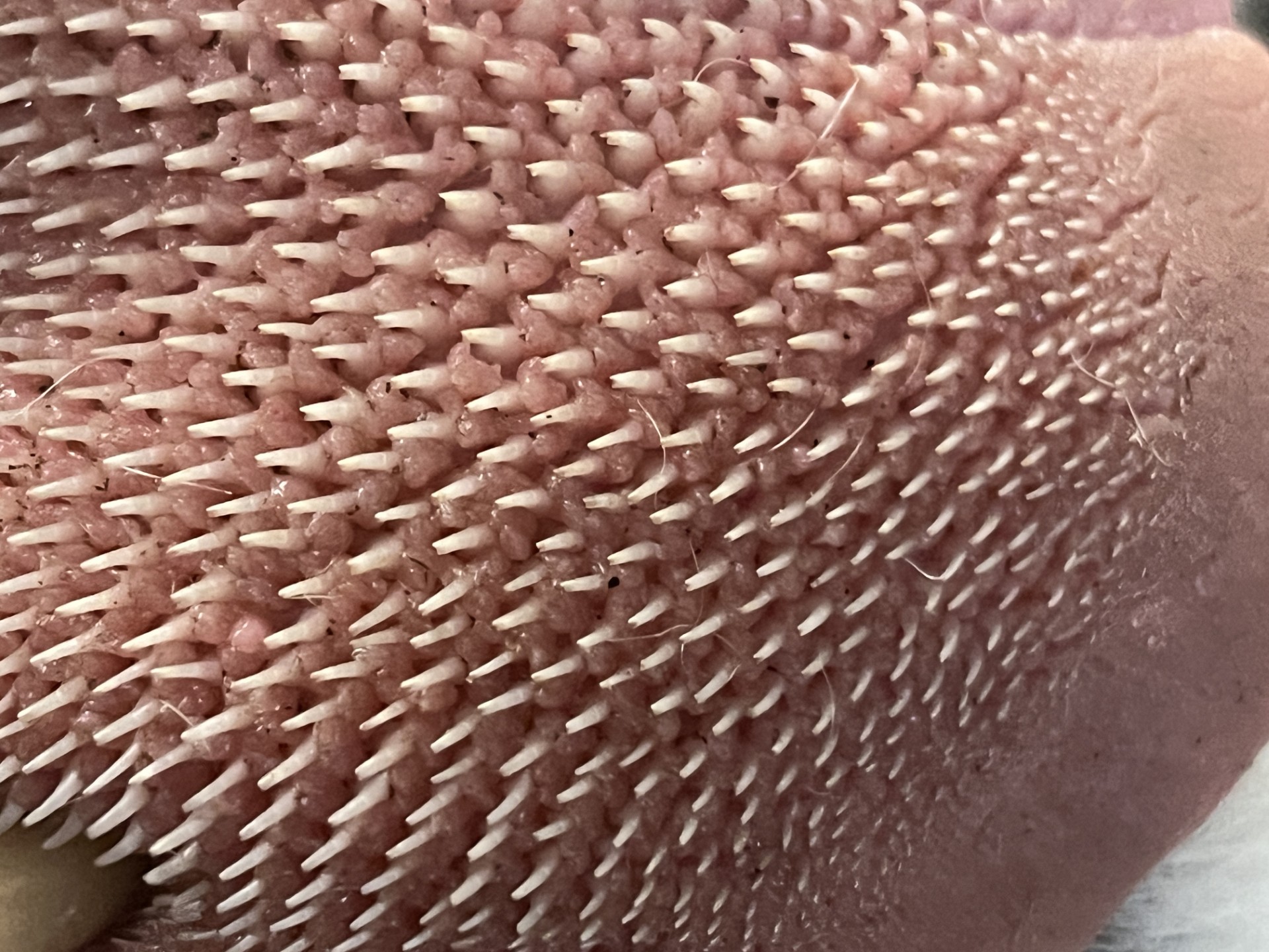 Papillae on a cat’s tongue protrude outward and are shaped similarly to tiny hooks or bristles, creating a surface that is reminiscent of a strip of Velcro. These structures serve multiple functions that are vital for the survival of cats in their natural habitats.