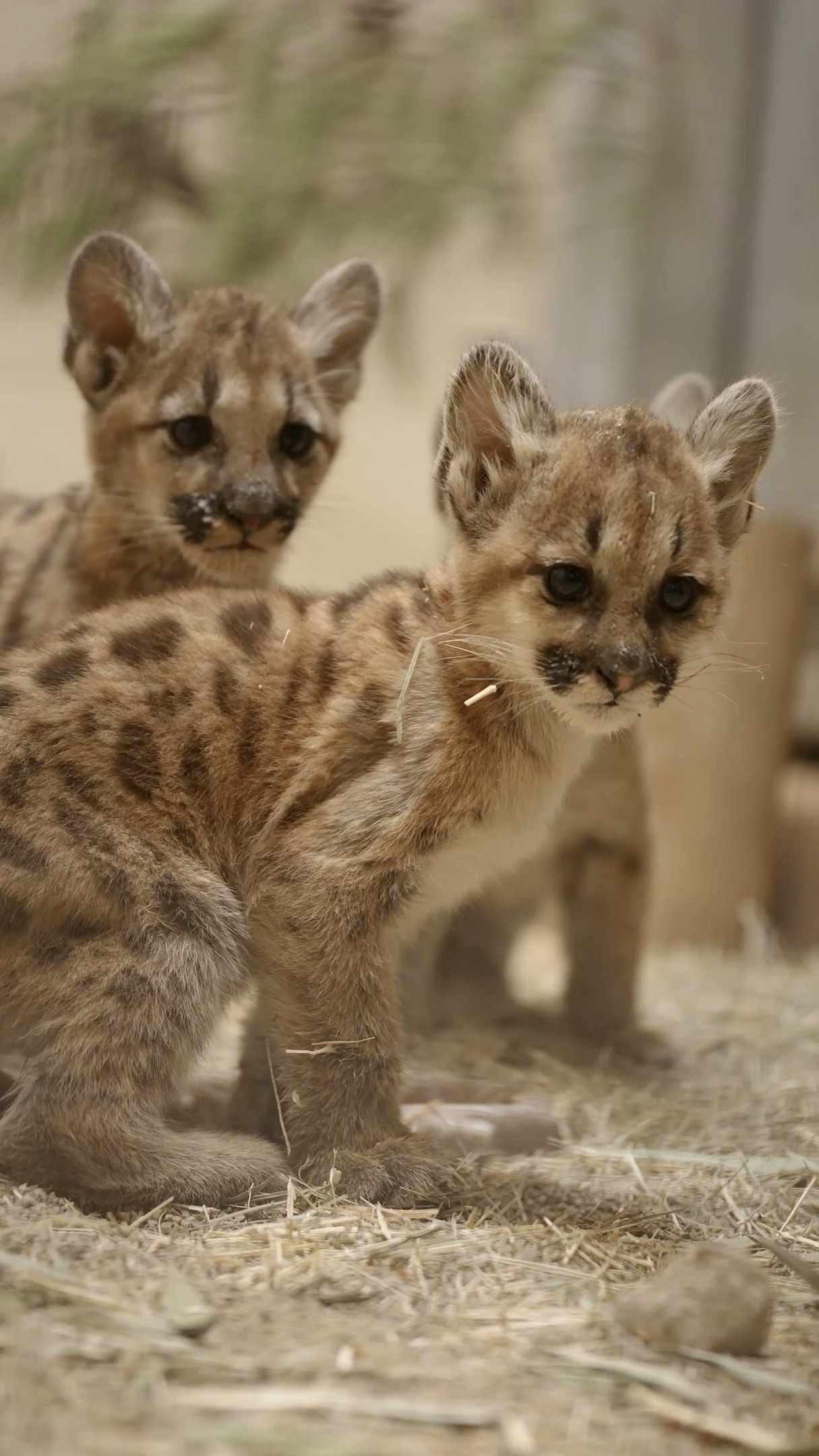 These mountain lions exhibit a fascinating range of personalities that reflect both their innate instincts and the environment in which they are nurtured. Hemuk, the eldest, tends to be the most curious and adventurous, often the first to explore new territory or investigate novel objects in their habitat. Te’Oyee, conversely, is more reserved, typically observing and assessing before actively engaging. This cautious nature often balances the exuberance of Hemuk. Pehkaay presents a blend of the two—playful yet thoughtful, often acting as a mediator between the spirited antics of Hemuk and Te’Oyee’s contemplative approach.