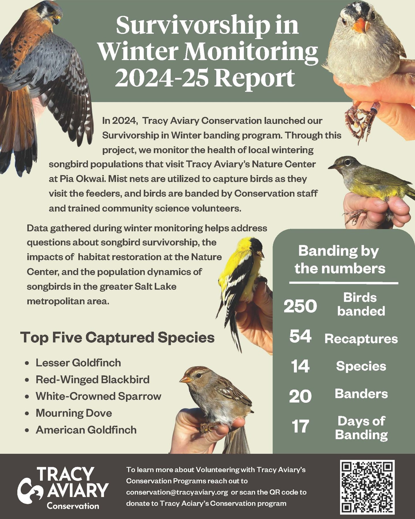 In 2024, Tracy Aviary Conservation launched our Survivorship in Winter banding program.