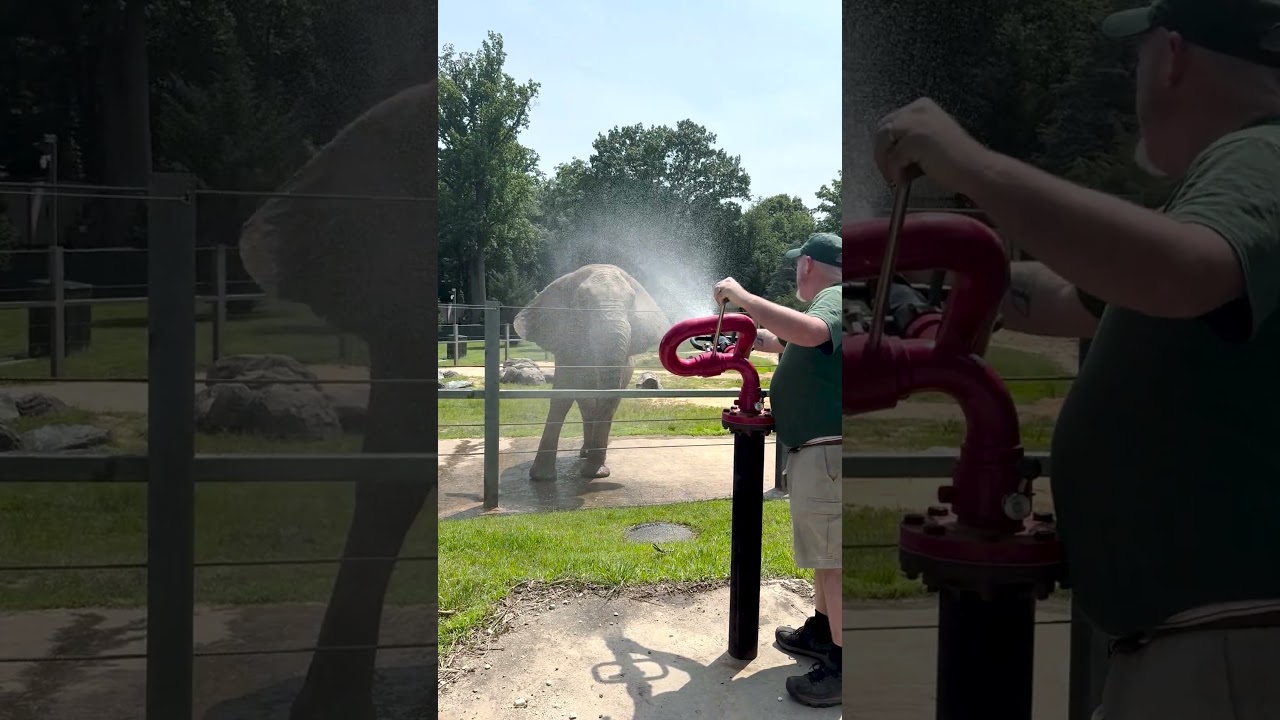 Hot day? No problem. Elephant Tuffy took a quick stroll to the water cannon and was soaking up the spray in no time! ๐ฆ๐