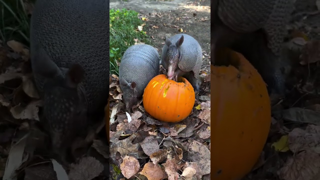 When I say I really like pumpkin, this is what I mean 🎃 Our armadillos had a real gourd time carving into their pumpkin enrichment filled with buggy treats 😋