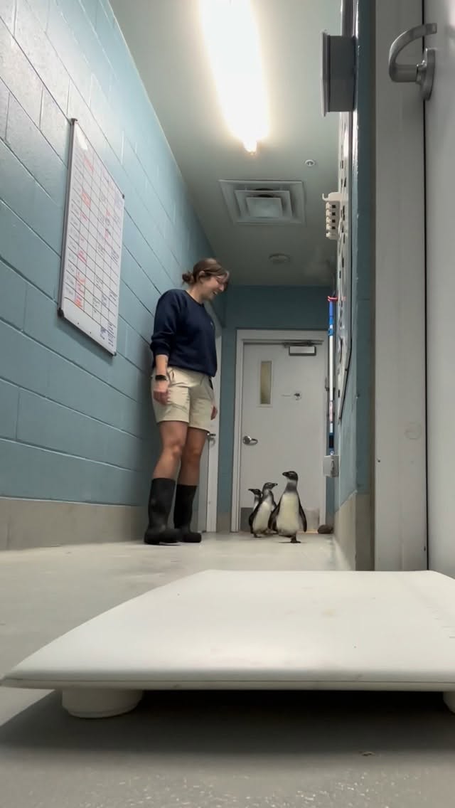 Our Animal Care Team weighs our African Penguin colony, of over 30 penguins, weekly! Curious how they do it? Take a look at some of the penguins who have just started learning to be weighed on the scale! This is one of the many voluntary behaviors that we teach our penguins to help support their overall wellbeing and healthcare! 🐧