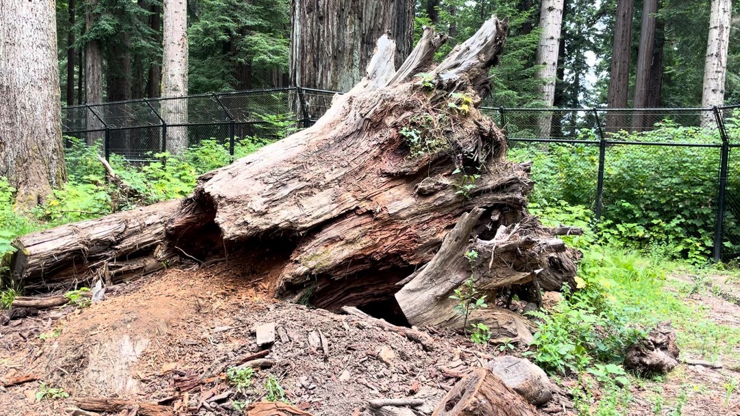 Tule the black bear spends lots of his time digging and rearranging giant, heavy objects. He has been busy creating a den underneath of a giant redwood root ball in the back yard of the bear habitat.