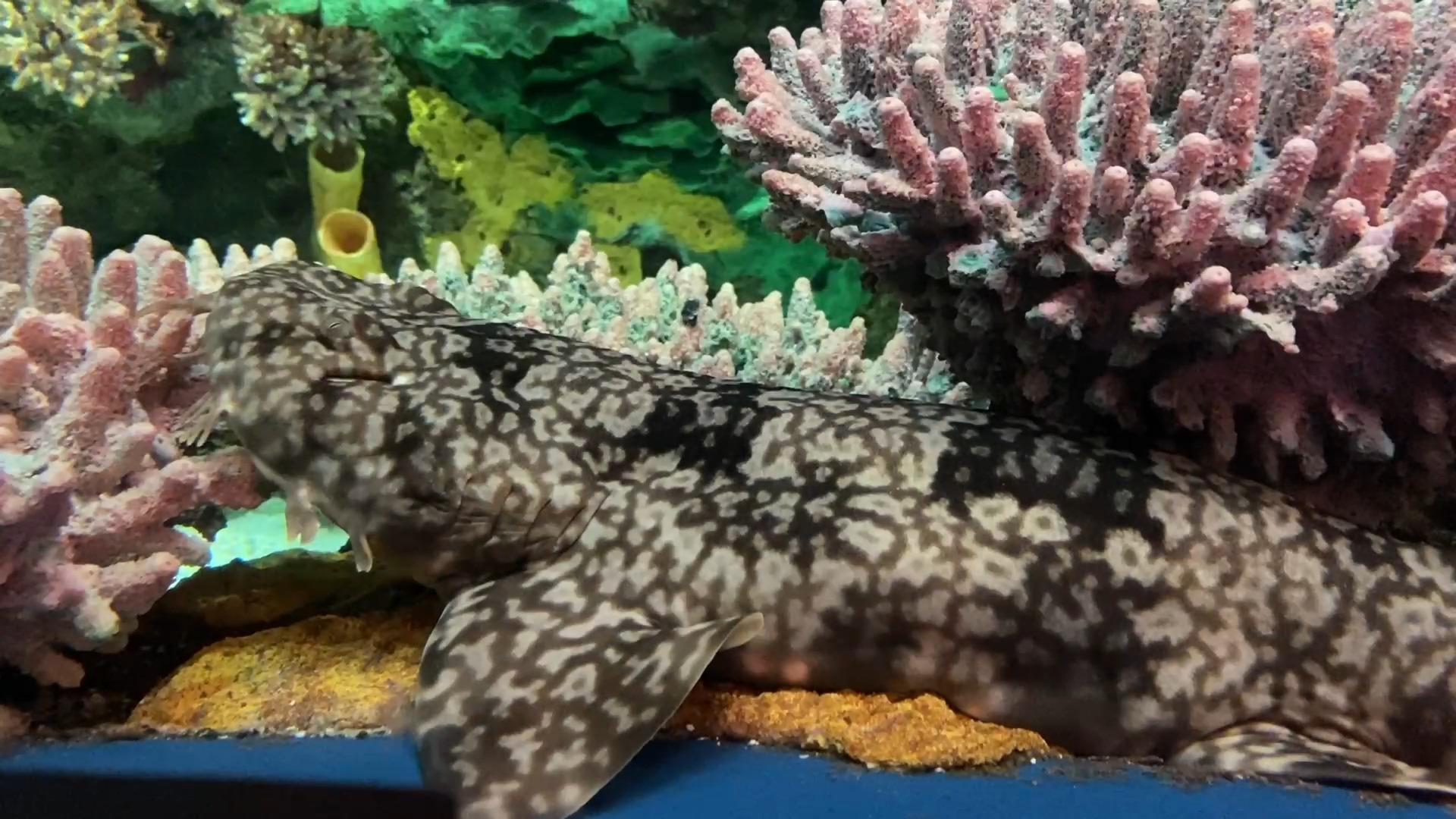 🤫Shh! This wobbegong shark is resting! Unlike some sharks that need to swim constantly to force water over their gills in order to breathe, wobbegongs can rest motionless on the ocean floor, as they are able to pump water over their gills. As nocturnal animals, they rest during the day and hunt at night. Wobbegongs are ambush predators using their flat shape and camouflage to enable them to remain almost invisible while they lie in wait for prey to swim past.